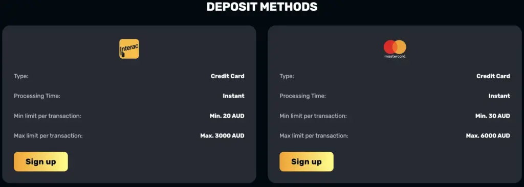 The time it takes for you to receive the funds from a withdrawal out of your Rocket Play Casino real money account varies depending on the method you choose. For crypto methods, they are processed instantly, while FIAT options could take between 3 and 7 banking days after cashout approval. Also, there are certain features you need to consider when making payments. The minimum deposit amount is 25 AUD, while the maximum varies depending on the method you choose. With withdrawals, the minimum is 30 AUD, while the maximum is pegged at 6,000 AUD.